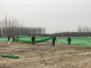 按照大风扬尘蓝色预警要求,以大气污染防治为重点。加强日常巡查检查力度,严控扬尘污染,大杜社村村委会组织人员对裸露区域进行苫盖