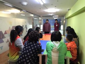和曲艺社团的同学一起与前来学习的人员进行快板学习交流。