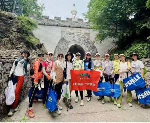 组织志愿者带着工具(夹子、环保袋)一起上山,沿着既定轨迹