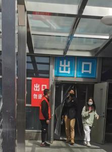 每天4人,身穿红马甲,指引上课和就餐的同学们带好口罩,间隔1米,在进入教学楼和食堂前进行体温检测。如果有体温异常同学,第一时间向学工办值班辅导员上报。