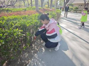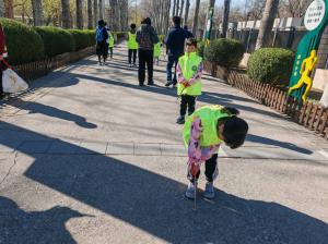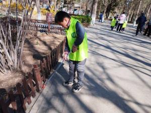 公园内组织大家进公园宣传环保意识,捡拾游人丢弃的塑料垃圾并提醒文明游园,为北京的环境卫生做贡献。督导儿童志愿者在安全的环境下开展活动。