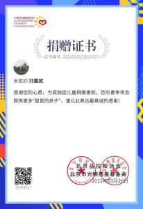 热爱慈善,乐于助人,用爱的力量去影响身边的人,把关爱传递给更多需要支持的自闭症儿童。