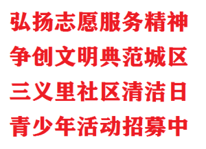 居住在三义里社区身体健康,热心公益的在小学、初中、高职、高中等在读在校生。