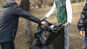 公园捡拾垃圾,清洁公园环境。