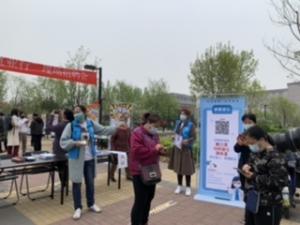现场志愿应聘者扫健康宝、测体温,站在一米线有序投递志愿者保障
