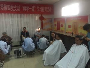 2017年12月18日的上午9点到12点,有理发、修脚技能的爱心志愿者在奥运村街道南沙滩社区的4号楼平房活动室为社区老党员进行修脚、理发的志愿活动。