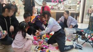 在现场跟经过的人们普及旧物利用的益处。并把自己的旧物赠送给喜欢的小朋友。