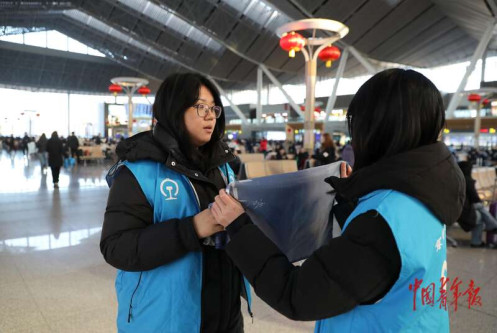 大一上学期,魏含羽曾在社区做过志愿者,但做春运志愿者,这样“一对一”面对旅客还是第一次。“每次帮助旅客后,收到对方的感谢,觉得自己的工作很有意义和价值。”她说。